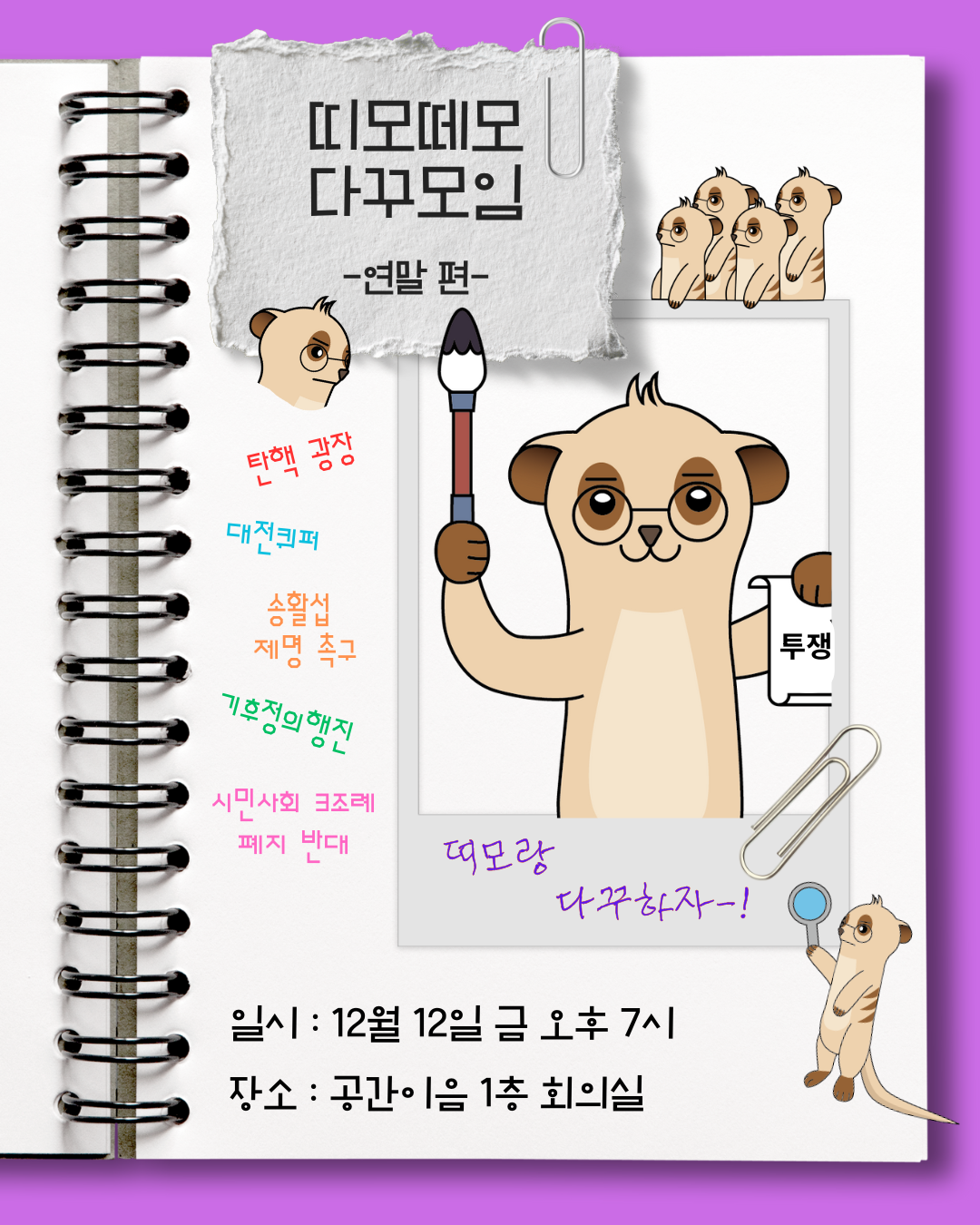 안녕하세요! 띠모떼모 다꾸모임 입니다. 이번에는 연말을 맞이하여 2025년 우리의 활동과 투쟁, 그리고 일상을 다이어리에 다정하게 기록하는 시간을 가져보려고 합니다.