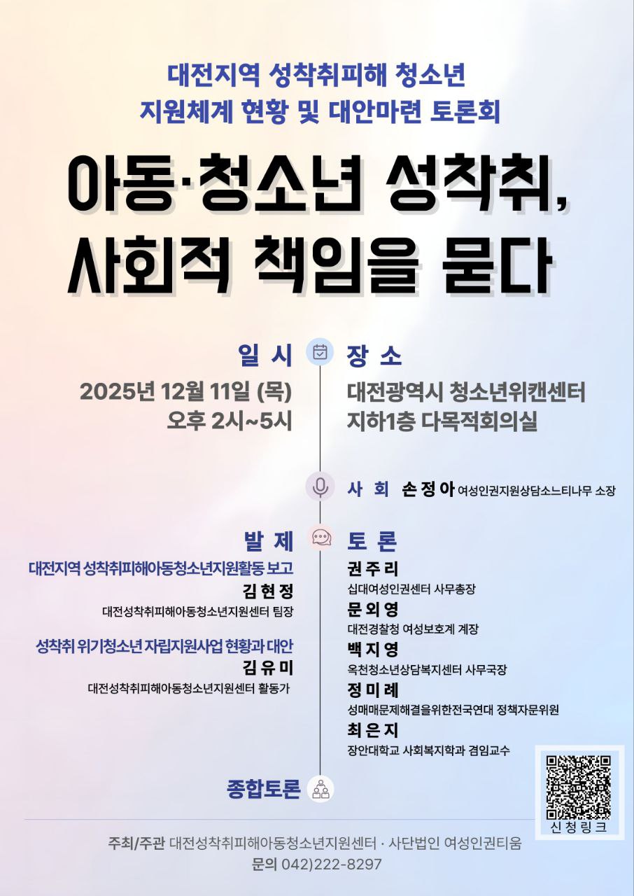 - 주제 : 대전지역 성착취피해 청소년 지원체계 현황 및 대안모색