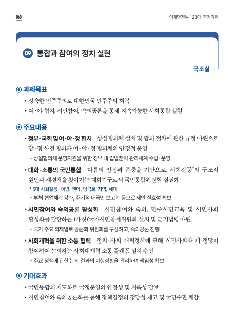 μ λΆλ 123λ κ΅μ κ³Όμ μ€ 9λ², ν΅ν©κ³Ό μ°Έμ¬μ μ μΉ μ€νμ μ μν λ° μμ΄μ. μ£Όμ λ΄μ©μ μ΄ν΄λ³΄λ©΄ "μλ―Όμ°Έμ¬μ μμκ³΅λ‘ νμ±ν"κ° μκ³ μ. νμ¬ λμ μΆ©λ¨ ν΅ν©μ κ΅μ κ³Όμ λ‘ λ΄μΈμ λ μ£Όμ₯κ³Όλ μμ λ°λλ‘ κ°κ³ μμ΄μ. μλ―Ό μ°Έμ¬μ μμκ³΅λ‘ μλ μμμ μλλ‘ μ°μ΄ λλ₯΄λ ν΅ν©λ§μ μ§ννκ³ μμ£ .