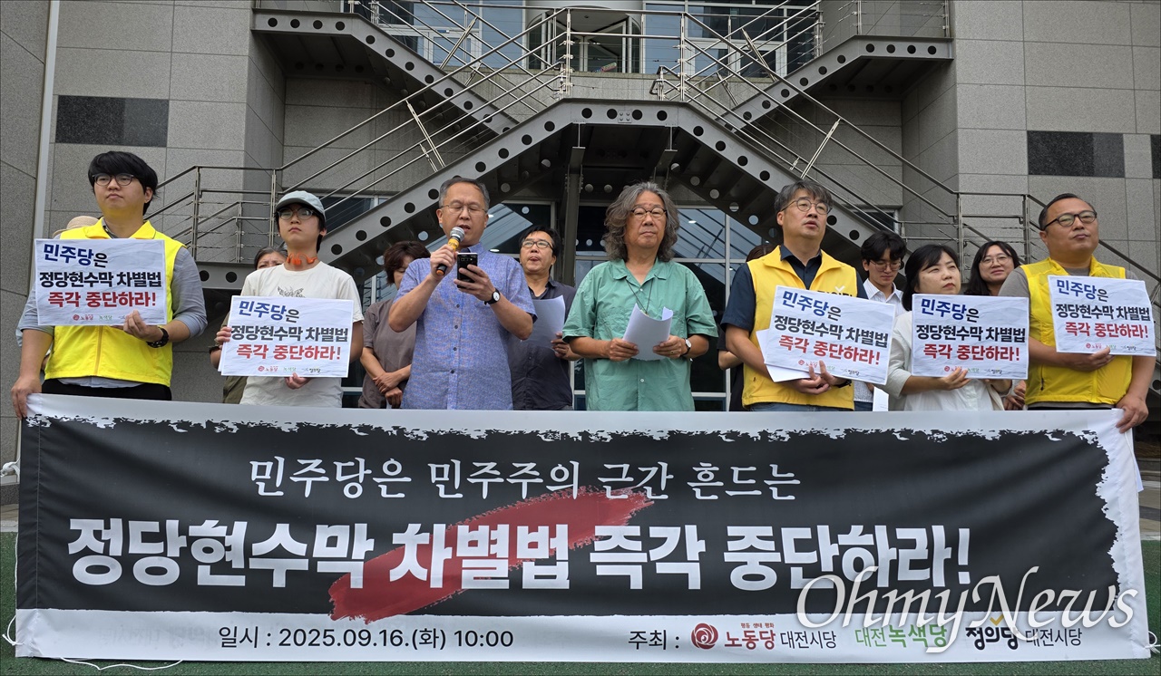이 개정안을 두고 대전에서도 노동당, 녹색당, 정의당이 기자회견을 열었어요. |