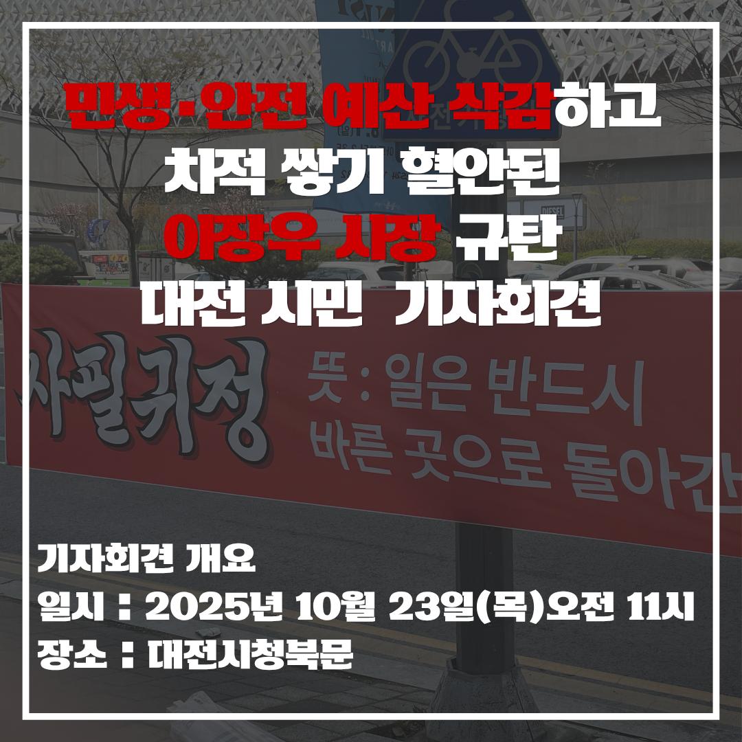 이장우 시장의 무책임한 예산 집행과 독단적 개발 정책을 규탄하고, 시민을 위한 예산 편성을 위해 서명에 함께 해주세요.