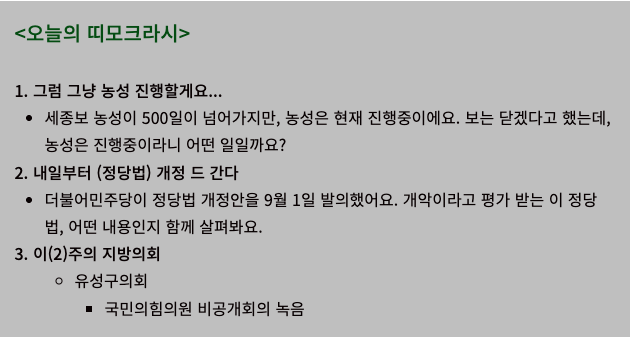 지난 9월 24일 <오늘의 띠모크라시>에서 보는 닫겠다고 했는데라고 하는 문구를 잘 못 적었습니다. 보는 열겠다고 밝혔는데, 라는 표현으로 정정합니다. 앞으로 더 주의하는 띠모크라시가 되겠습니다. |